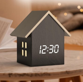 A house-shaped alarm clock