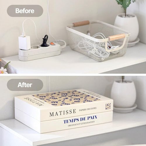 Keeping a collection of chargers, cords, and plugs near your bed or favorite chair is a smart, utilitarian organization solution. Aesthetically, though, it is terrible. It looks messy, invites clutter, and drags your clean, minimalist style into hoarder territory. This decorative cable management box lets you have your convenient wires but hides them inside what looks like a stack of books. No one will suspect it is anything else. Choose from 11 book collections and four styles.
