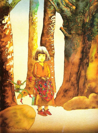 By then I wanted very much to be able to read by myself. The stained-glass, strained-light quality of Foreman's water-colours and the poetic silliness and melancholy of the stories made the whole unknown world of books seem intensely alluring. It was threatening in some ways – Beasts with a Thousand Teeth roamed the streets after curfew, and Monster Trees bearing proscribed blue apples grew in the middle of black forests like thickets of eyes – but there were tastes and sights there that couldn't be had anywhere else: fruit that made you forget your loved ones, witches' treasures, rainbow cats. Like stout-hearted Molly, I wanted to know how that world worked, and to be able to untie the ribbon which shrank the beast into the rabbit.