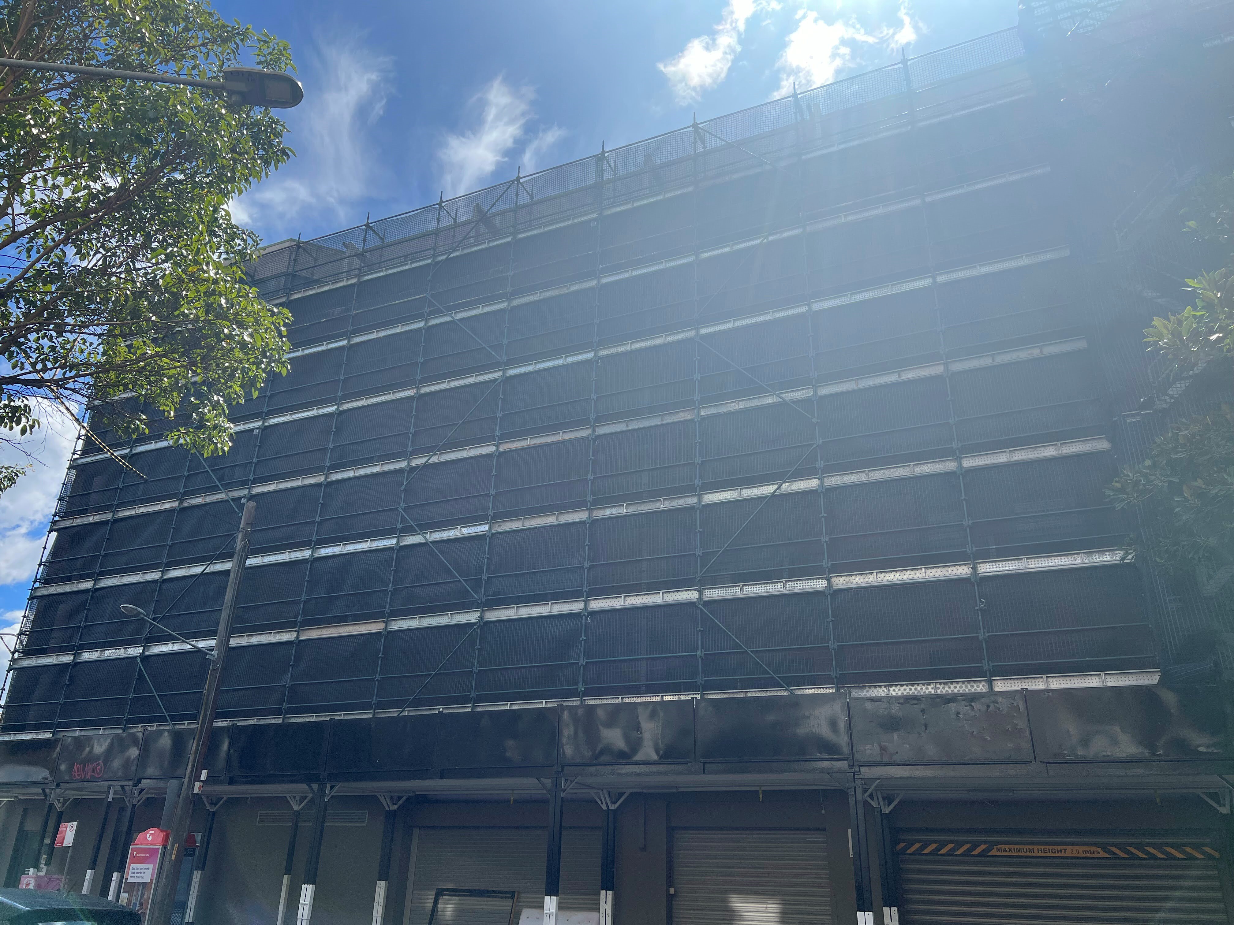 A couple of months after moving in he returned from a work trip to find the front of the building covered in black scaffolding.