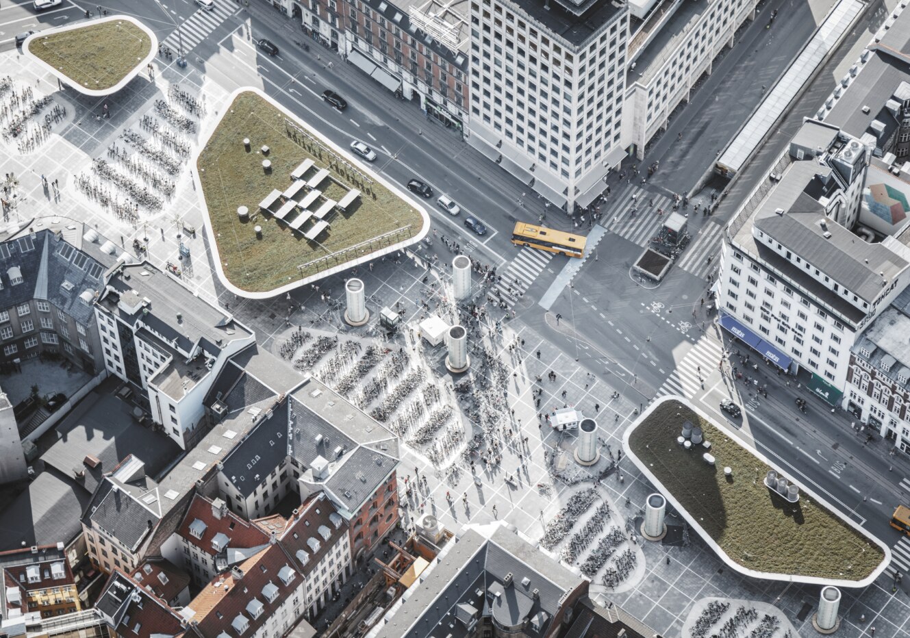 Many who use Copenhagen's Nørreport Station are on foot and on bikes, navigating their way around the trams, buses and cars that also use the surrounding area.
