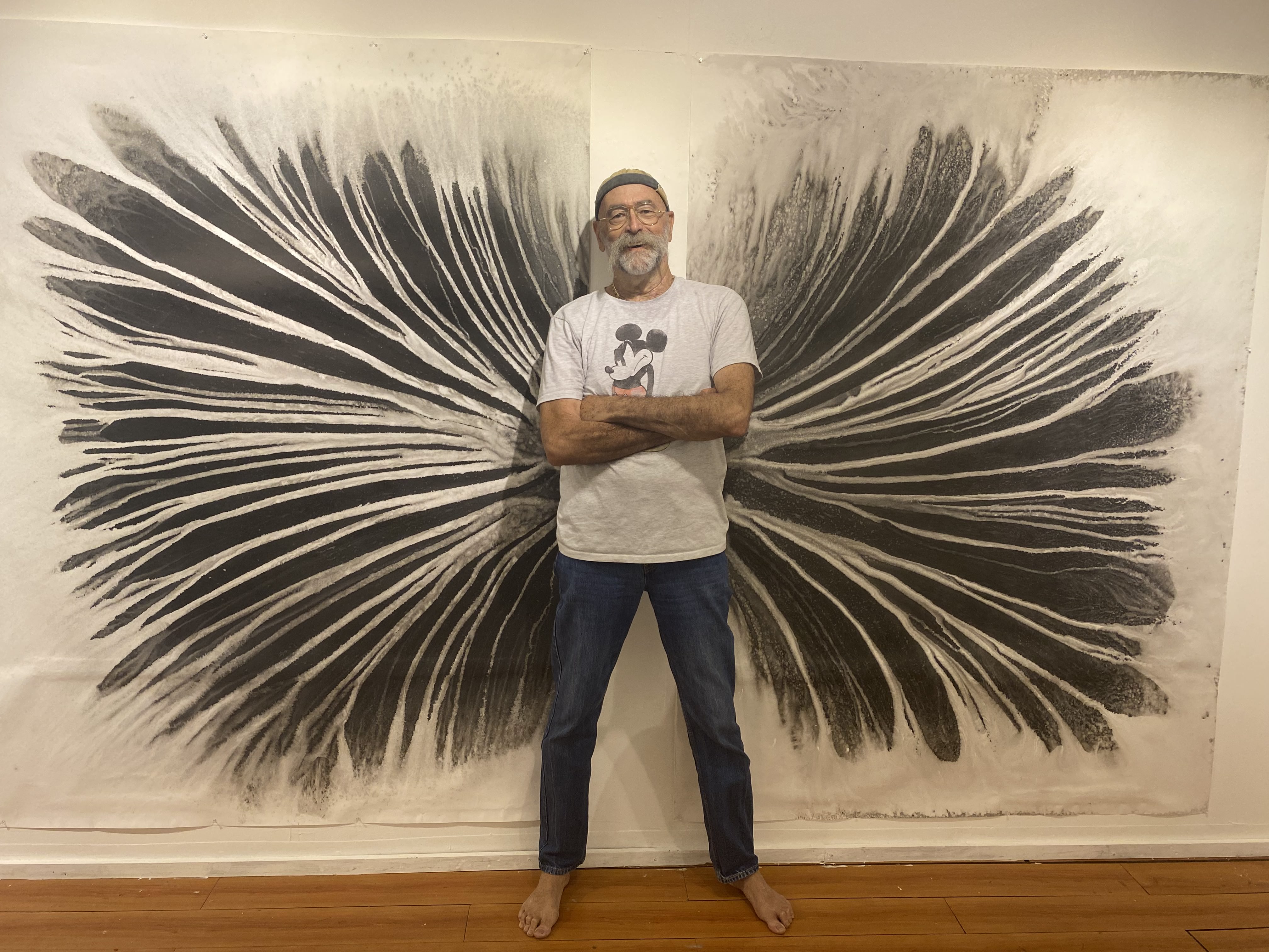 The 69-year-old uses natural elements – like water and branches – to transform paper into what he describes as Rorschach test-like ink blots.