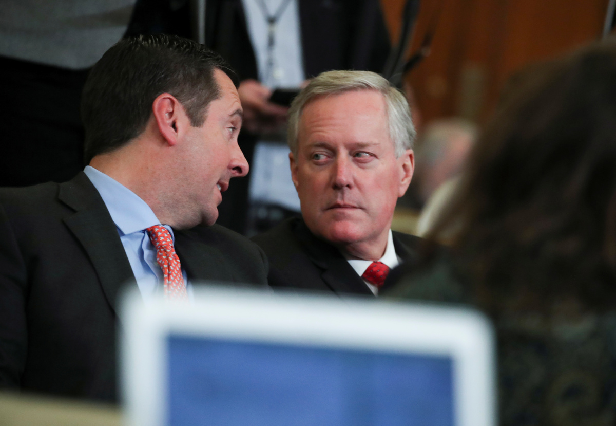 House Intelligence Committee ranking member Rep. Devin Nunes (R-CA) sits in the audience with Rep. Mark Meadows (R-NC) during the House Judiciary Committee's first hearing on the impeachment inquiry into President Trump on Capitol Hill in Washington, U.S., December 4, 2019. REUTERS/Jonathan Ernst