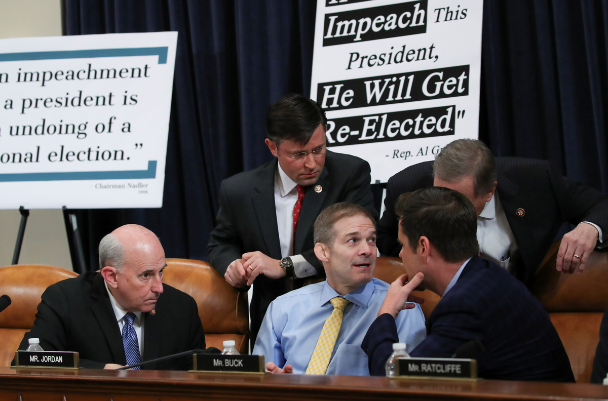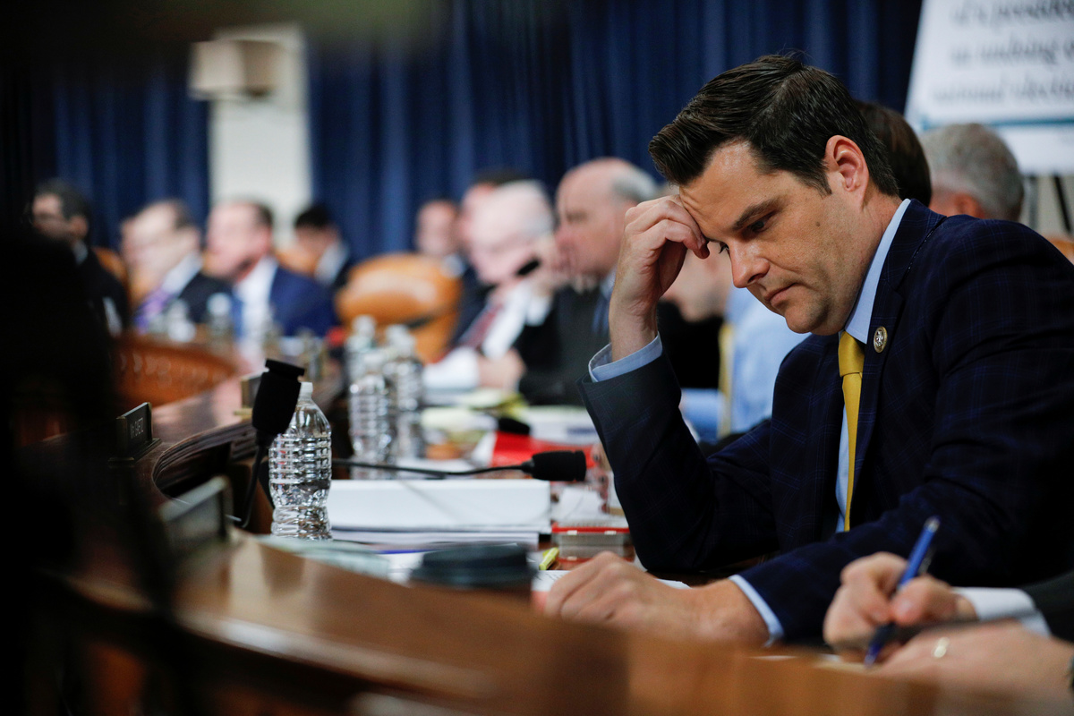 U.S. Rep. Matt Gaetz (R-FL) questions a panel of constitutional experts during a House Judiciary Committee hearing on the impeachment Inquiry into U.S. President Donald Trump on Capitol Hill in Washington, U.S., December 4, 2019. Saul Loeb/Pool via REUTERSRep. Jim Jordan (R-OH) questions constitutional scholars during testimony before the House Judiciary Committee hearing on the impeachment Inquiry into U.S. President Donald Trump on Capitol Hill in Washington, U.S., December 4, 2019. Drew Angerer/Pool via REUTERSRep. Steve Chabot (R-OH) questions constitutional scholars during testimony before the House Judiciary Committee hearing on the impeachment Inquiry into U.S. President Donald Trump on Capitol Hill in Washington, U.S., December 4, 2019. Drew Angerer/Pool via REUTERSJournalists and visitors sit inside old fashioned phone booths outside a House Judiciary Committee hearing on the impeachment inquiry into U.S. President Donald Trump in the Longworth House Office Building on Capitol Hill in Washington, U.S., December 4, 2019. REUTERS/Tom BrennerU.S. Representative Sheila Jackson Lee holds up copies of the Mueller Report as she questions constitutional scholars during a House Judiciary Committee hearing on the impeachment Inquiry into U.S. President Donald Trump on Capitol Hill in Washington, U.S., December 4, 2019. Saul Loeb/Pool via REUTERSPamela Karlan, professor of Public Interest Law and co-director of the Supreme Court Litigation Clinic at Stanford Law School, testifies during a House Judiciary Committee hearing on the impeachment inquiry into U.S. President Donald Trump on Capitol Hill in Washington, U.S., December 4, 2019. REUTERS/Jonathan ErnstRepublican House member Rep. Matt Gaetz (R-FL) listens to testimony as the House Judiciary Committee holds their first hearing on the impeachment inquiry into U.S. President Donald Trump on Capitol Hill in Washington, U.S., December 4, 2019. REUTERS/Tom BrennerNews photographers and members of the committee look towards the witnesses during the first U.S. House Judiciary Committee hearing on the impeachment inquiry into President Donald Trump on Capitol Hill in Washington, U.S., December 4, 2019. REUTERS/Tom BrennerMichael Gerhardt, professor of law at University of North Carolina School of Law, testifies during a House Judiciary Committee hearing on the impeachment inquiry into U.S. President Donald Trump on Capitol Hill in Washington, U.S., December 4, 2019. REUTERS/Tom BrennerA screen displays text from the U.S. House Intelligence Committee's impeachment report behind witness Jonathan Turley, professor of law at George Washington University Law School, as he testifies during the first U.S. House Judiciary Committee hearing on the impeachment inquiry into President Donald Trump on Capitol Hill in Washington, U.S., December 4, 2019. REUTERS/Tom BrennerHouse Judiciary Ranking Member Rep. Doug Collins (R-GA) speaks alongside House Judiciary Committee Chairman Jerrold Nadler (D-NY) during a House Judiciary Committee hearing on the impeachment Inquiry into U.S. President Donald Trump on Capitol Hill in Washington, U.S., December 4, 2019. Saul Loeb/Pool via REUTERSJonathan Turley, professor of law at George Washington University Law School, testifies during a House Judiciary Committee hearing on the impeachment inquiry into U.S. President Donald Trump on Capitol Hill in Washington, U.S., December 4, 2019. REUTERS/Mike Segar?Republican House members Rep. Louie Gohmert (R-TX), Rep. Mike Johnson (R-LA), Rep. Jim Jordan,Rep Andy Biggs (R-AZ) and Rep. Matt Gaetz (R-FL) confer during a break as the House Judiciary Committee holds their first hearing on the impeachment inquiry into U.S. President Donald Trump on Capitol Hill in Washington, U.S., December 4, 2019. REUTERS/Jonathan ErnstPamela Karlan, professor of Public Interest Law and co-director of the Supreme Court Litigation Clinic at Stanford Law School, is seated during a break in testimony before a House Judiciary Committee hearing on the impeachment inquiry into U.S. President Donald Trump on Capitol Hill in Washington, U.S., December 4, 2019. REUTERS/Loren ElliottThe House Judiciary Committee holds a hearing on the impeachment Inquiry into U.S. President Donald Trump on Capitol Hill in Washington, U.S., December 4, 2019. Saul Loeb/Pool via REUTERSHouse Judiciary Committee Chairman Jerrold Nadler (D-NY) and House Judiciary Ranking Member Rep. Doug Collins (R-GA) attend a House Judiciary Committee hearing on the impeachment Inquiry into U.S. President Donald Trump on Capitol Hill in Washington, U.S., December 4, 2019. Saul Loeb/Pool via REUTERSU.S. Capitol police officers watch from in front of a video monitor displaying definitions of "High Crimes and Misdemeanors" as the U.S. House Judiciary Committee holds their first hearing on the impeachment inquiry into U.S. President Donald Trump on Capitol Hill in Washington, U.S., December 4, 2019. REUTERS/Joanthan ErnstA U.S. Capitol police officer watches from in front of a video monitor displaying part of the call record of U.S. President Donald Trump's phone call with Ukraine's President Volodymyr Zelenskiy as the House Judiciary Committee holds their first hearing on the impeachment inquiry into U.S. President Donald Trump on Capitol Hill in Washington, U.S., December 4, 2019. REUTERS/Jonathan ErnstWitness Jonathan Turley, a professor of law at George Washington University Law School, takes his papers from his briefcase as he prepares to testify at the start of a House Judiciary Committee hearing on the impeachment Inquiry into U.S. President Donald Trump on Capitol Hill in Washington, U.S., December 4, 2019. REUTERS/Tom BrennerPamela Karlan, professor of Public Interest Law and co-director of the Supreme Court Litigation Clinic at Stanford Law School, testifies during a House Judiciary Committee hearing on the impeachment inquiry into U.S. President Donald Trump on Capitol Hill in Washington, U.S., December 4, 2019. REUTERS/Tom BrennerNoah Fe