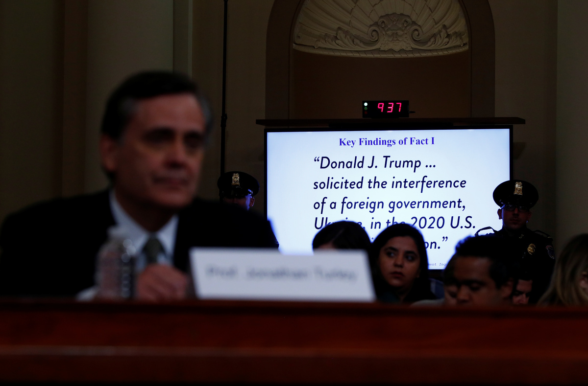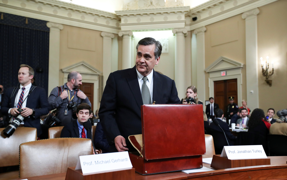 Jonathan Turley, professor of law at George Washington University Law School, testifies during a House Judiciary Committee hearing on the impeachment inquiry into U.S. President Donald Trump on Capitol Hill in Washington, U.S., December 4, 2019. REUTERS/Jonathan Ernst?