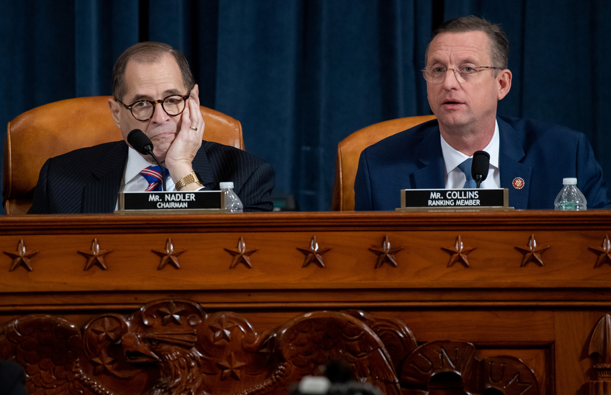Committee ranking member Representative Doug Collins (R-GA) listens as constitutional scholars testify during a House Judiciary Committee hearing on the impeachment of US President Donald Trump on Capitol Hill in Washington, DC, U.S. December 4, 2019. Drew Angerer/Pool via REUTERS