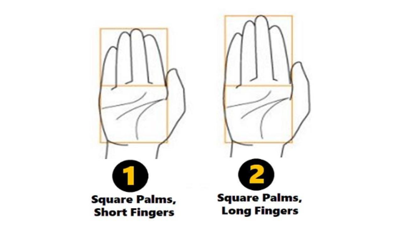 If you have square palms with short fingers, you're likely to be strong-willed and determined. Once you set your mind on something, you stick to it until you achieve your goal. Leadership comes naturally to you, and you're known for your loyalty. You prefer physical labour over mental exertion and have a no-nonsense approach to life.