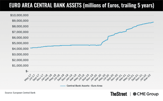 In addition, the ECB has only committed to raising interest rates after it stops purchasing bonds in the third quarter of 2022. The ECB has added over €3.8 trillion to euro area balance sheets since March 2020.