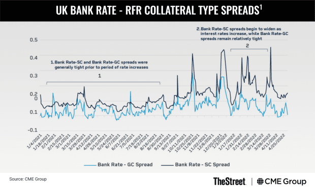 UK GC rates have closely followed the bank rate since the beginning of a series of rate increases in Dec 2021.
