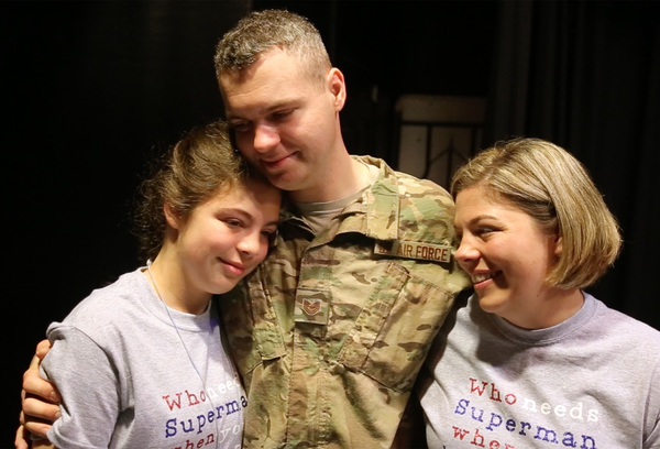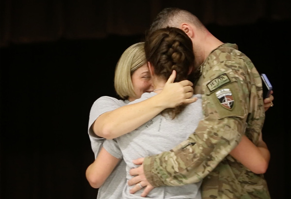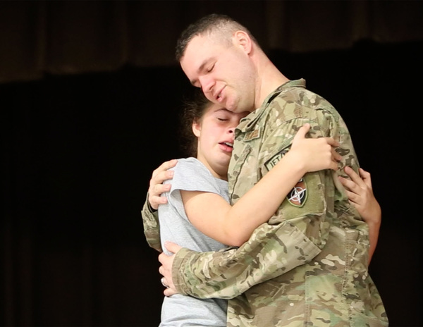 Tech Sgt. Casey Richardson of the Second Air Force surprised his daughter last Monday returning from his deployment in Afghanistan before she expected it.