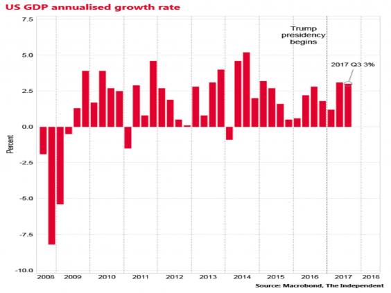 Ever since he unexpectedly prevailed over Hillary Clinton in the 8 November 2016 presidential election, Donald Trump has been boasting about his achievements in boosting the US economy.