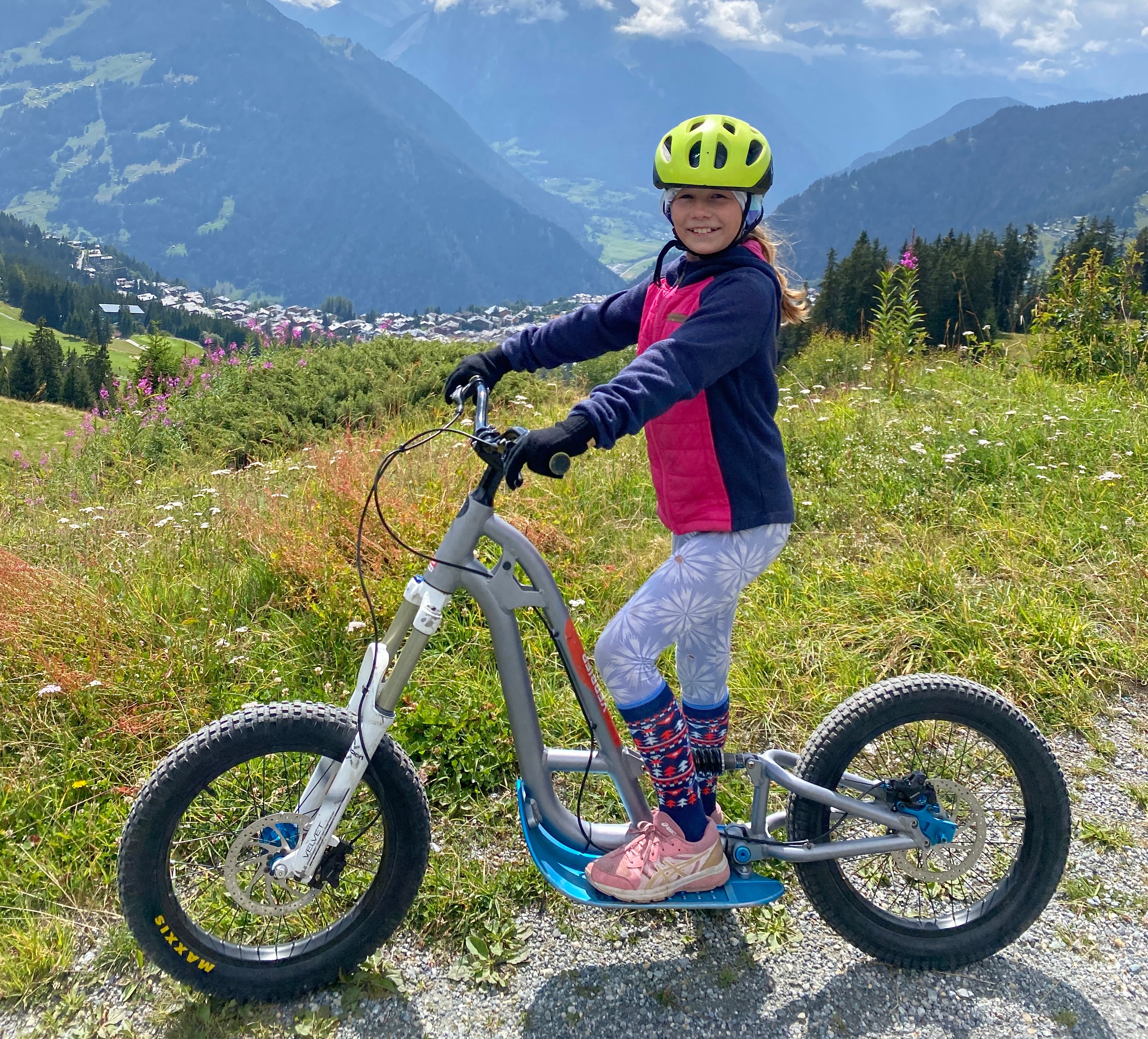 As an adventure lover I’ve encouraged my active daughter to be courageous and curious, but after taking the (free) shuttle to Verbier a thought seed blooms: has the pupil become the master? While scootering through alpine meadows from La Chaux gondola station to bustling Verbier, she roars ahead while I hunch over handlebars, both brakes on. At the Treetop Park ropes course she’s abseiling down a three-storey tower while I’m being overtaken by nimble seven year olds. And at the Mont 4 Zipline it hits me – my girl is growing up.
