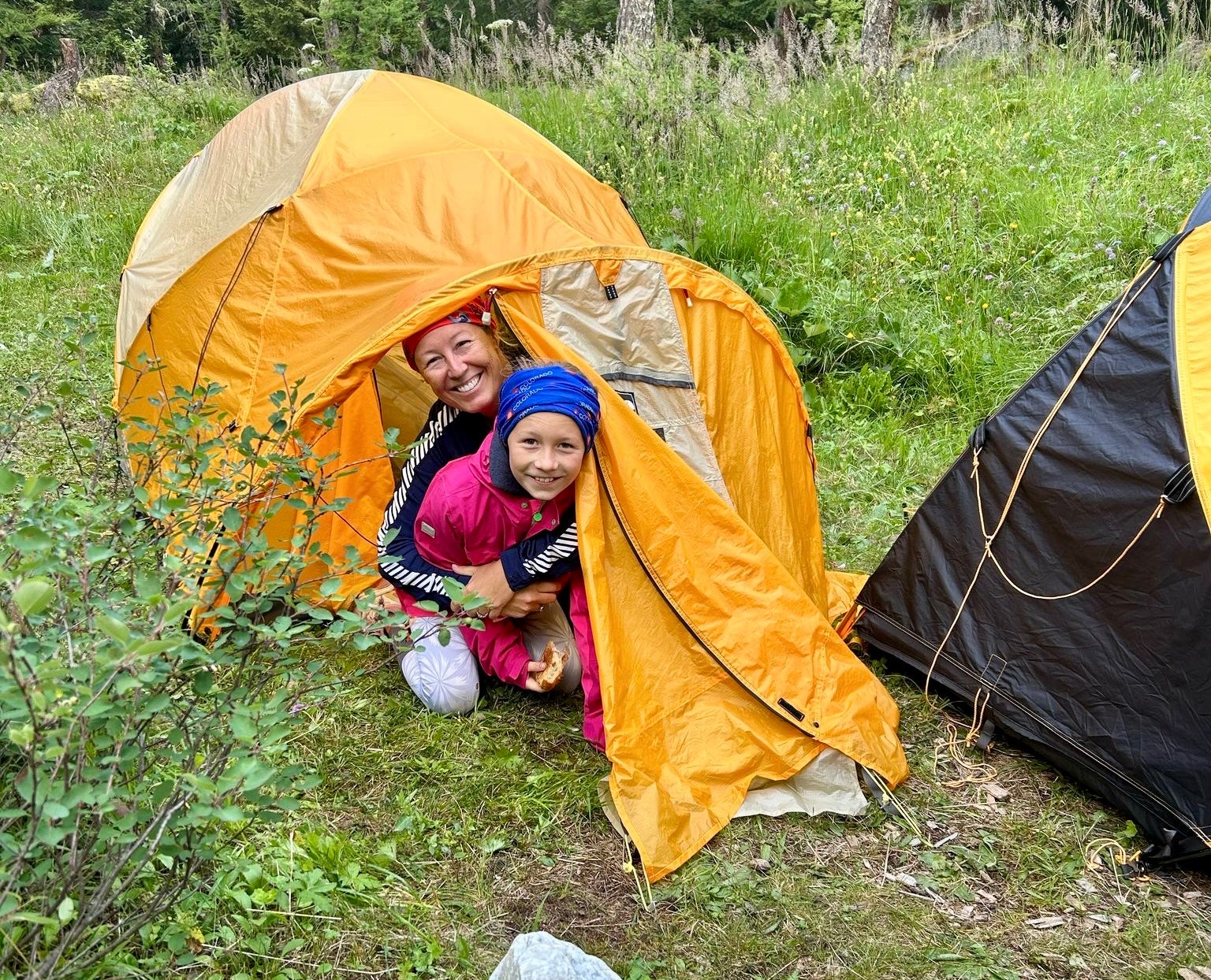 We learn here was a second campsite in the valley, now buried by a landslide that took the bridge with it, cutting off little Bonatchiesse for two months. Discovering the nearby (sole) restaurant, where we swirl fondue sticks like Star Wars lightsabres, I start to think that I’d quite like to be stranded here for two months. Strolling back to camp under an apricot alpine glow betters any 4K screensaver. The cherry on this alpine gateau is falling asleep to the lullaby of my daughter’s soft breaths, a soothing soundtrack for my soul.