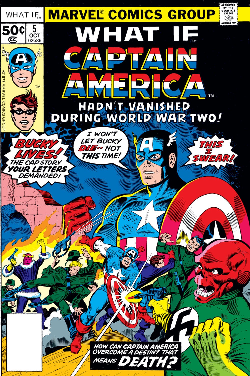 What happens — In this 1977 story, Steve Rogers and Bucky Barnes manage to disarm Baron Zemo’s drone plane and continue to fight in America’s subsequent wars and battle against Communism. Nick Fury is killed during the Korean War, and Steve Rogers is asked to become the head of the newly formed espionage agency, S.H.I.E.L.D. Bucky then takes up the mantle of Captain America, and Rick Jones becomes the new Bucky.