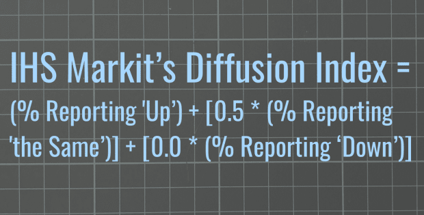 IHS Markit’s Diffusion Index = (% Reporting ‘Up’) + [0.5 * (% Reporting ‘the Same’)] + [0.0 * (% Reporting ‘Down’)]