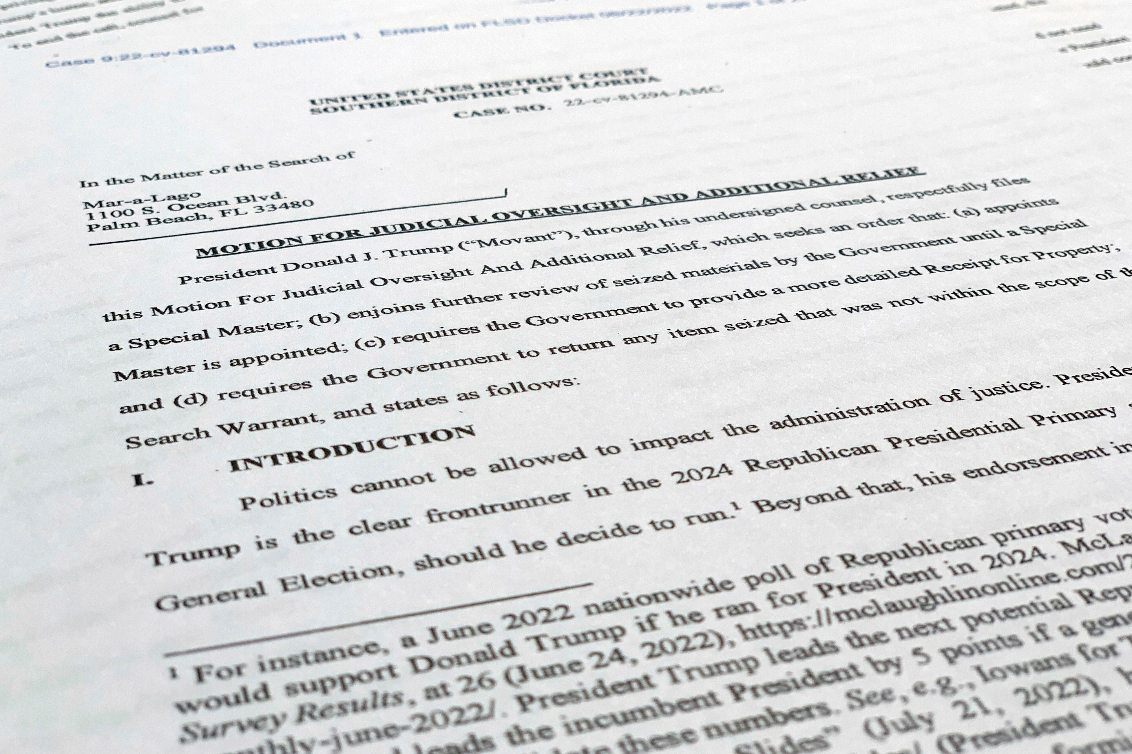 But Trump's motion to the court says he wants a neutral third party to look through the documentation before the investigation resumes.