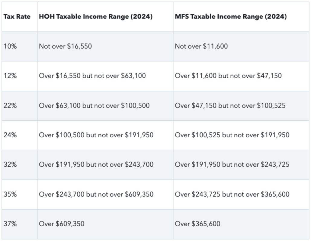 2024 Filing Status: Head of Household (HOH) and Married Filing Separately (MFS)