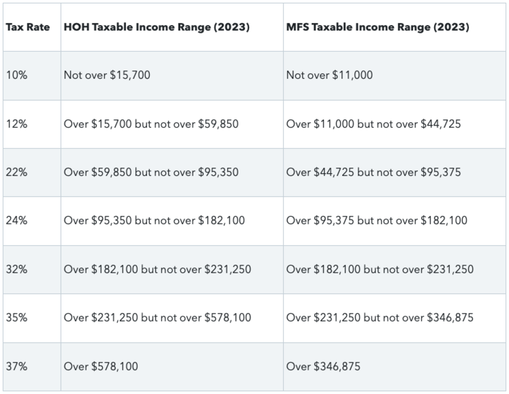 2023 Filing Status: Head of Household (HOH) and Married Filing Separately (MFS)