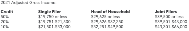 In 2021, the maximum adjusted gross income for Savers Credit eligibility is: