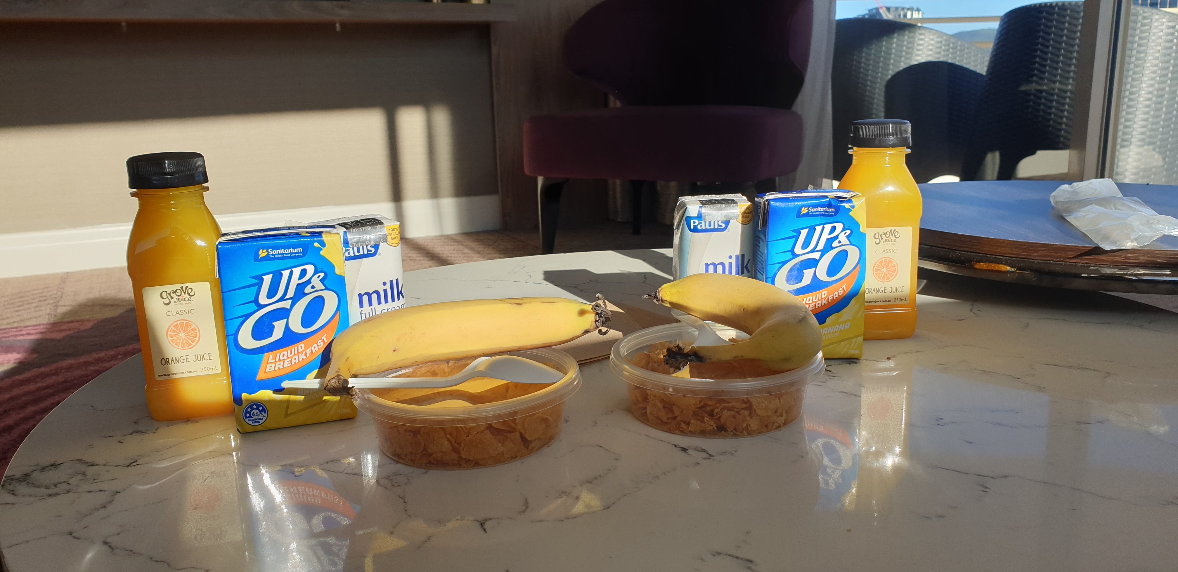 After a couple of hours of waiting around we’re finally escorted by local police, and the Australian defence force, to our convoy of government-contracted coaches. Miraculously, we win the quarantine lottery and end up in a four-star hotel that not only overlooks the Brisbane River, but features balconies – the holy grail of quarantine. Next to us, a couple jokes with a police officer about how the biggest hardship they now face is surviving 14 days being locked in a room together.