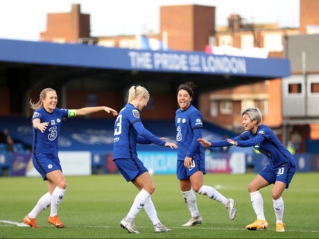 The Blues extended their unbeaten league run to 31 games as Pernille Harder and Fran Kirby fired them to a 2-1 win over Manchester United and sent them to the top of the table.