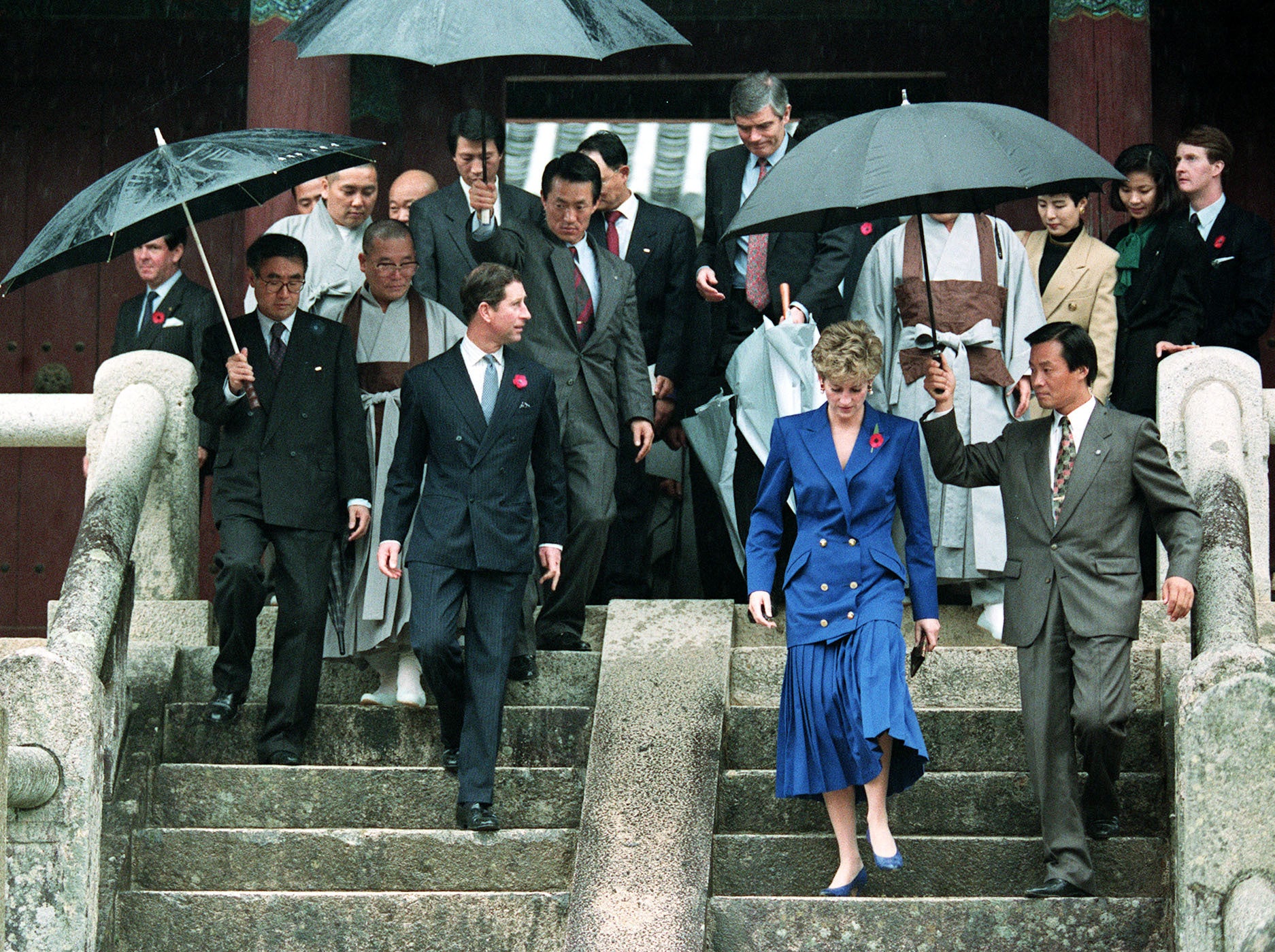 The blue blazer and midi skirt is almost identical to an outfit worn by Diana during a visit to South Korea in 1992. It wouldn’t be the first time Kate has paid tribute to her late mother-in-law with her fashion choices, and it certainly won’t be the last.