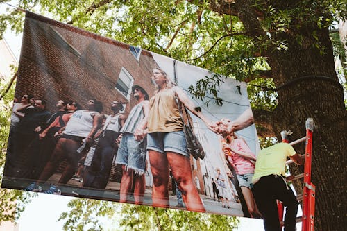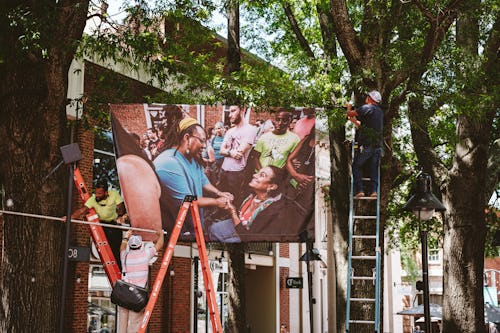 “For this project to happen, I had to donate [it],” Amos explains. There are no permits available to put up an installation on the downtown mall, he says, so donating the project was the only available way to get the photos displayed there.