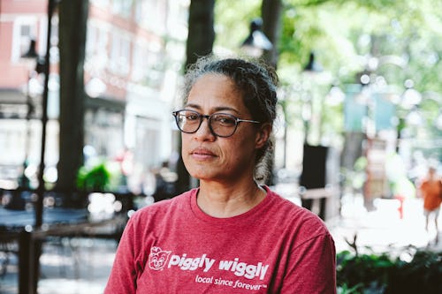 In Amos’s picture, the man sits with his daughter, son-in-law, and grandchildren, whom he says he brought to the protest “to experience what I was experiencing and what this community experienced.” The man finishes, “The sadness of that day, the pain of that day will never go away. I’m sad forever because of it.”