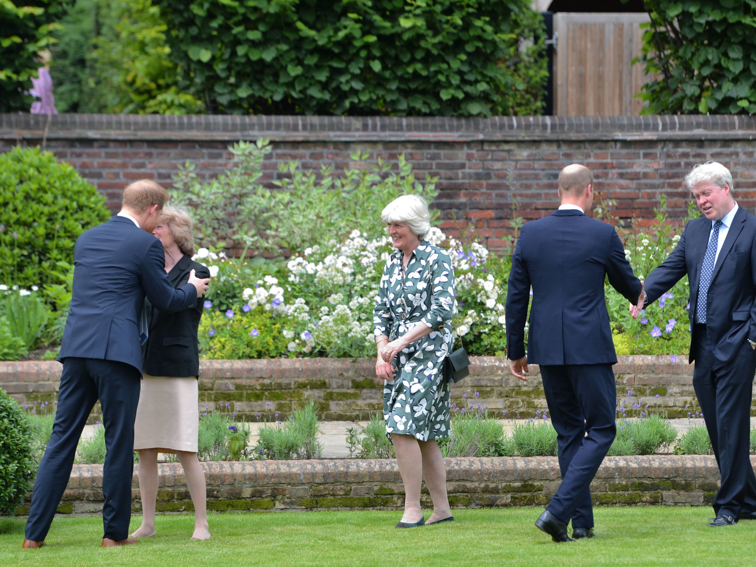 They were accompanied by their mother's siblings, Lady Sarah McCorquodale, Lady Jane Fellowes, and Earl Spencer alongside the sculpture Rank Broadley, Rupert Gavin, Chair of Historic Royal Palaces, and Pip Morrison, the garden designer.