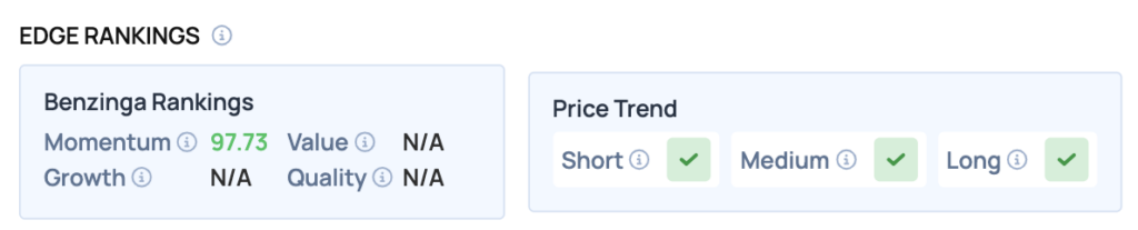 Benzinga Edge Rankings: Despite the flat trading session, Benzinga Edge rankings highlight the stock’s powerful underlying momentum with a score of 97.73.