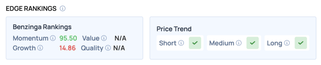 Benzinga Edge Rankings: Despite the weekly price decline, Benzinga Edge rankings highlight the stock’s exceptionally strong Momentum score of 95.50.
