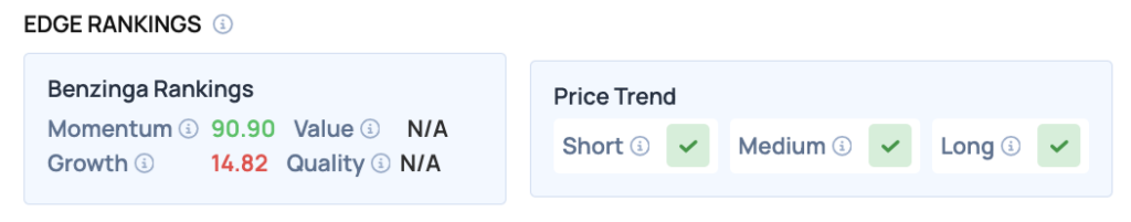 Benzinga Edge Rankings: Reflecting the stock’s powerful recent rally, Benzinga Edge rankings show Plug Power with an exceptionally strong Momentum score of 90.90.