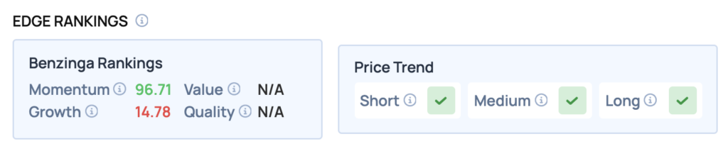 Benzinga Edge Rankings: Reflecting its recent sharp price movement, Plug Power currently holds a very high Momentum score of 96.71, according to Benzinga Edge Rankings.