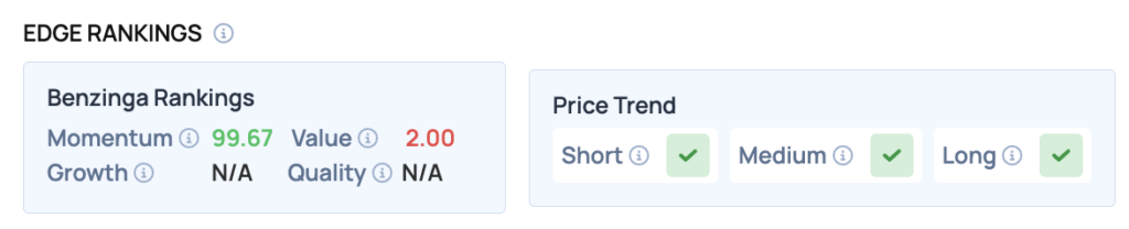 Benzinga Edge Rankings: Underscoring RGTI’s rally, Benzinga Edge Rankings show the stock has an exceptionally high momentum score of 99.67.