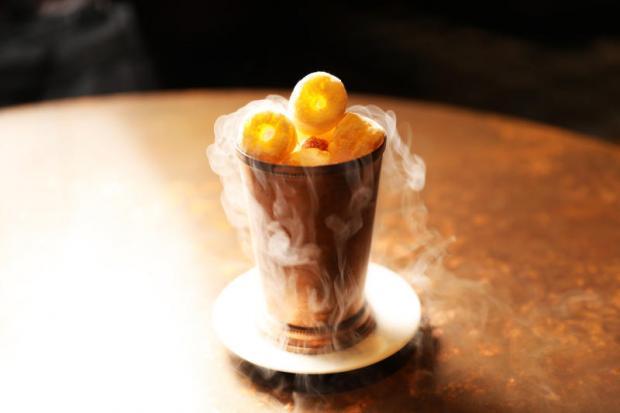 To end the meal, staff recommended the signature dessert, Puff The Magic Dragon (280 baht), a sweet puffy snack flash-frozen in a bubbling bowl of liquid nitrogen. Chewing the crunchy puffs creates a smoke-like vapour from your nose and mouth. To me, the experience was more of a novelty than a particularly satisfying taste experience.
