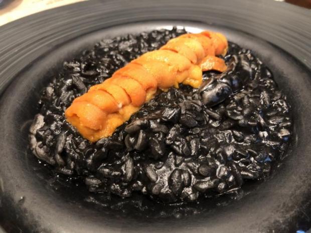 Following that was the squid-ink risotto with baby squid and Hokkaido uni (1,350 baht). The rice was perfectly cooked in the pitch black sauce and went wonderfully with the generous helping of creamy, custard-like sea urchin roe. From the pasta menu, the wagyu lasagne (550 baht) proved a delight.