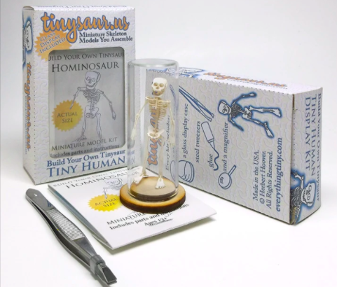 For an affordable, hands-on experience in creating a little something special for your growing creepy collection, the Tiny Human Deluxe Kit offers up a miniature version of the human skeleton that comes with pre-cut paper bones, borosilicate glass display dome, exhibit base, glue, tweezers, and a magnifier to build your two-inch hominosaur in 20 to 30 minutes.