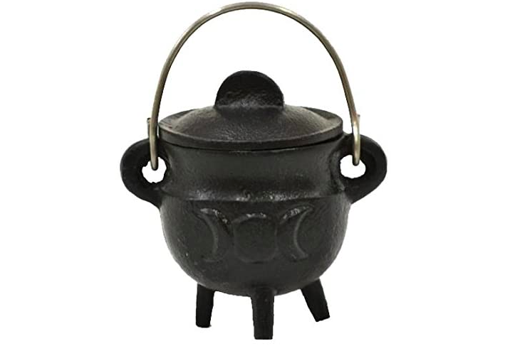 Sarimoire Cauldron 5.25 Inch Triple Moon Cast Iron Cauldron with Lid and Handle