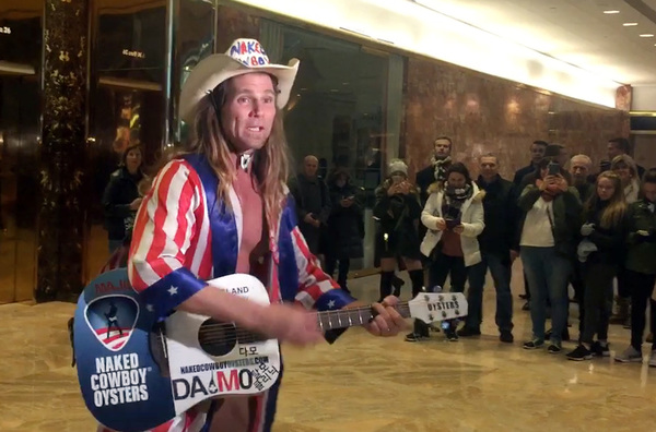 Then there's the Naked Cowboy, a well-known New York street performer who wears only a jacket, cowboy hat and boots, and white briefs while strumming a guitar and singing a little ditty about the man himself, Donald Trump.