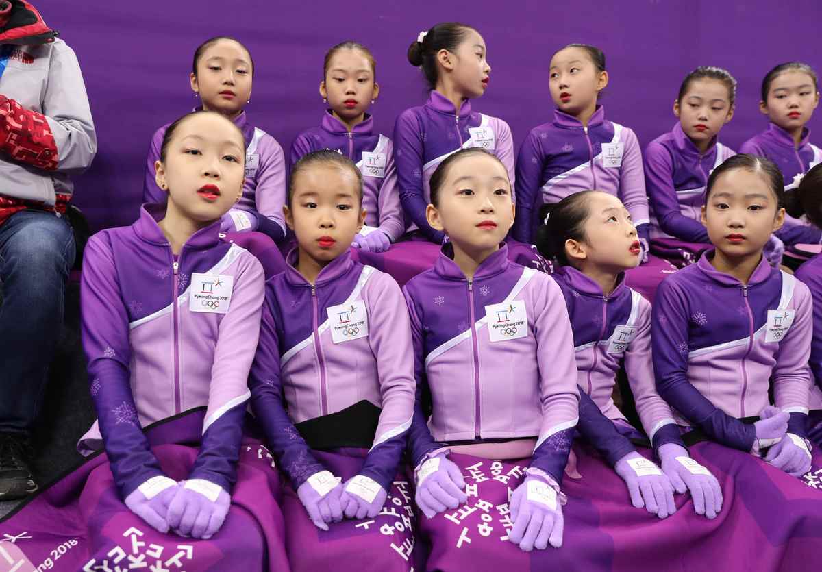 Kang and the other 16 children who dash on to the ice clad in the purple colours of the Pyeongchang Games are all skaters skilled enough to do their own double jumps.