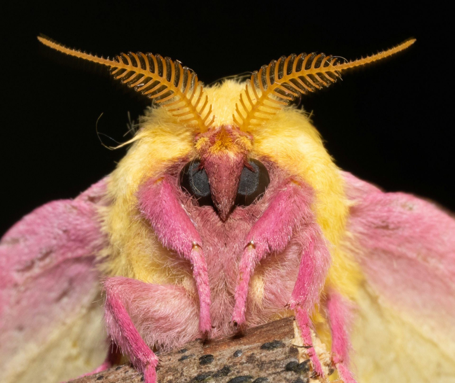 Moths generally have straight antennae. But if they’re males, their antennae are often fluffy and feather-like. These fluffy antennae are used to help them find mates from large distances.