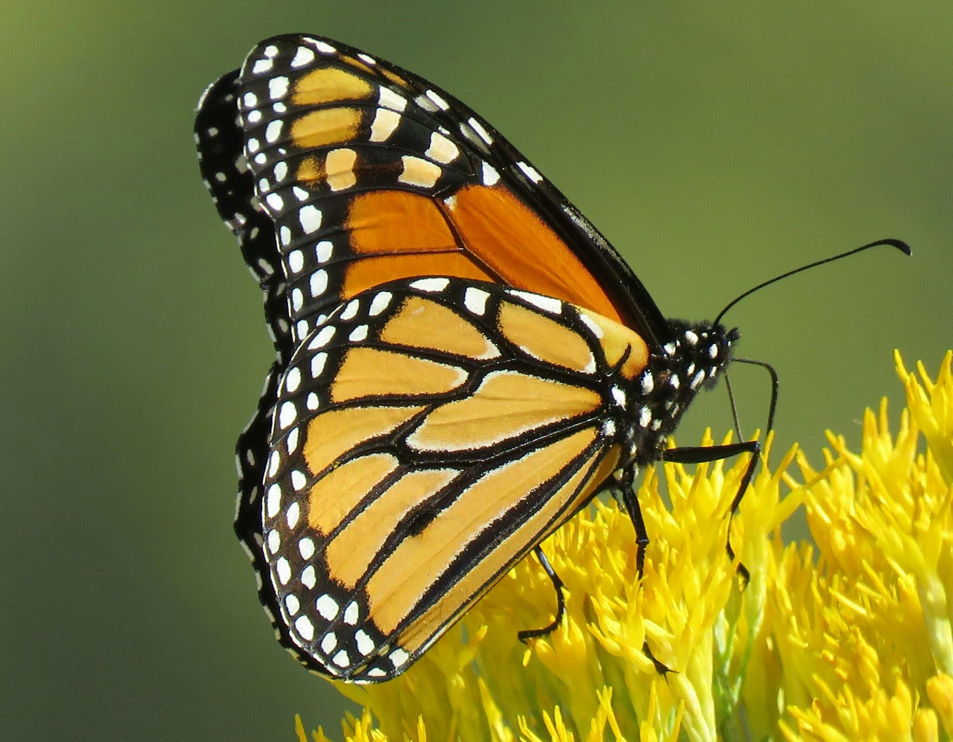 The main factor that determines a butterfly is its clubbed antennae. Unlike those of moths, butterfly antennae consist of a long thread with a bead at the end. However, this can be pretty hard to see while they are fluttering around!