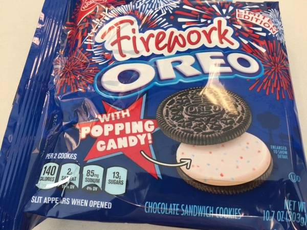 No: Last week brought the newest Oreo innovation _ Fireworks Oreos. With a filling dotted with bits of Pop Rocks, the candy that fizzes in your mouth, it actually sounds kind of fun. Oreos that bite back? Well, why not?
