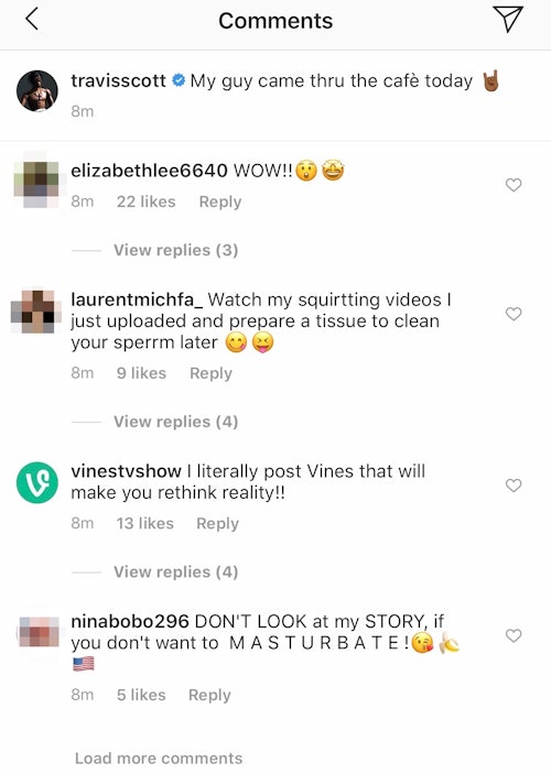 Whenever Travis Scott or Kylie Jenner share a photo with their millions of followers on Instagram, it’s almost inevitable that the first comment on it will be something along the lines of “Watch my squirting videos I just uploaded and prepare a tissue to clean your sperm later.”