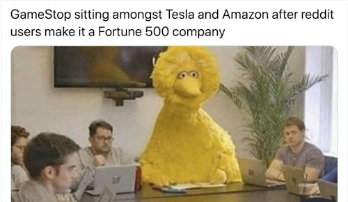 Aside from the potential financial windfall, a lot of the appeal of “meme stocks” seems to stem from the rush of sticking it to Wall Street and screwing over the rich. That helps explain why GameStop’s wild stock market ride became such a viral sensation this week: As people got wind of the collective power of a bunch of proletariat traders on Reddit, they couldn’t get enough. Naturally, the whole phenomenon has been copiously memed.