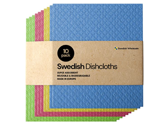 Swedish Dishcloth Cellulose Sponge Cloths - Bulk 10 Pack of Eco-Friendly No Odor Reusable Cleaning Cloths for Kitchen