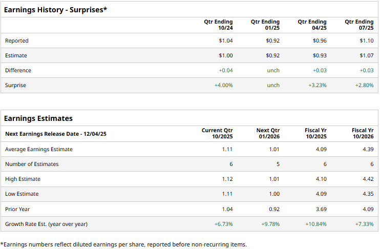 The healthcare major is expected to announce its fourth-quarter results by early December. Ahead of the event, analysts expect the COO to deliver an adjusted profit of $1.11 per share, up 6.7% from $1.04 per share reported in the year-ago quarter. The company has a solid earnings surprise history. It has met or surpassed the Street’s bottom-line estimates in each of the past four quarters.