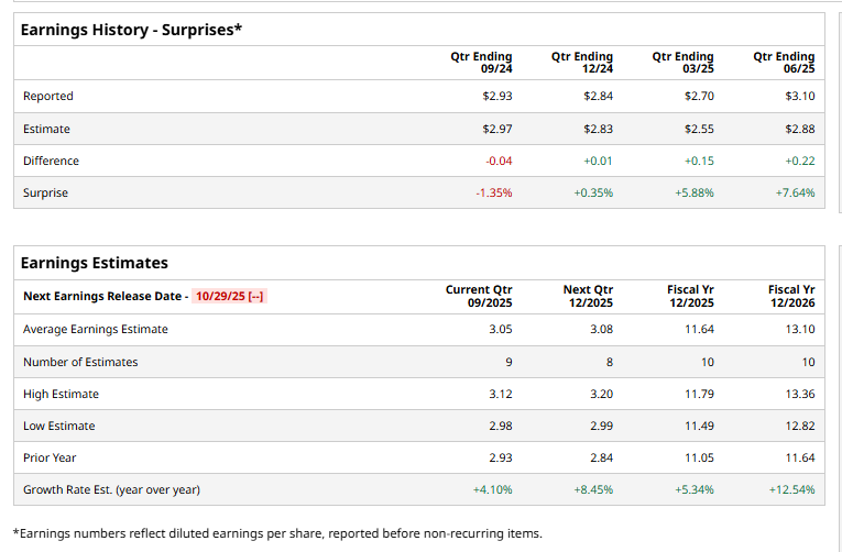Valued at a market cap of $20.7 billion, Global Payments Inc. (GPN) is a payment technology and software provider headquartered in Atlanta, Georgia. It enables businesses of all sizes to accept and process payments securely across card, digital, and check-based channels. The company is expected to announce its fiscal Q3 earnings for 2025 on Wednesday, Oct. 29.