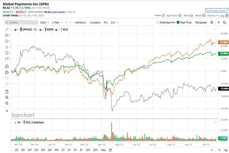 Shares of GPN have declined 15.9% over the past 52 weeks, considerably lagging behind both the S&P 500 Index's ($SPX) 14.1% rise and the Technology Select Sector SPDR Fund’s (XLK) 23.9% return over the same time frame.
