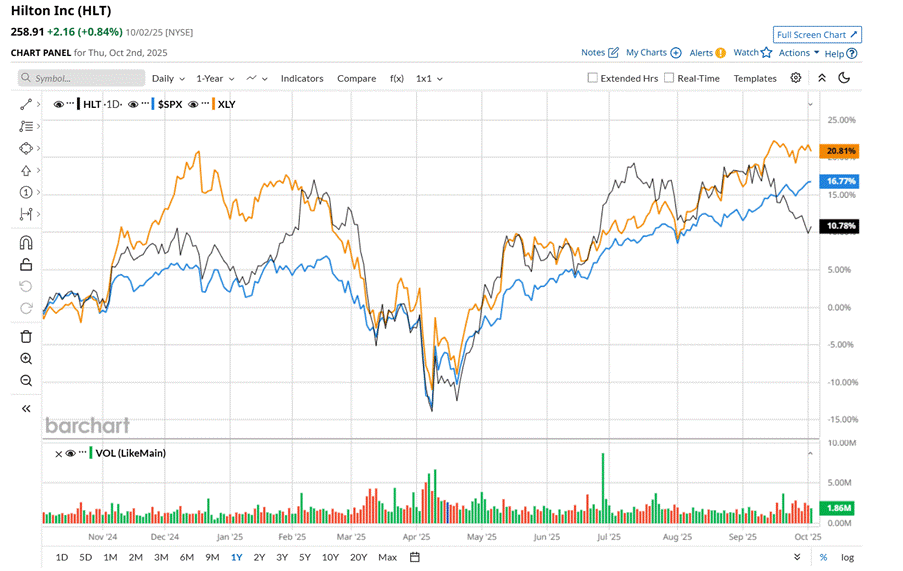 Shares of HLT have gained 11.9% over the past 52 weeks, underperforming both the S&P 500 Index's ($SPX) 17.6% uptick and the Consumer Discretionary Select Sector SPDR Fund’s (XLY) 21% return over the same time frame.